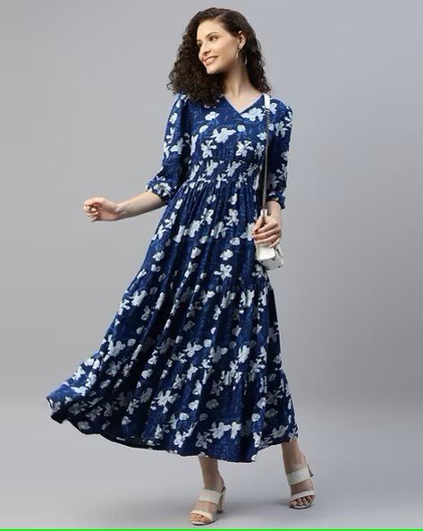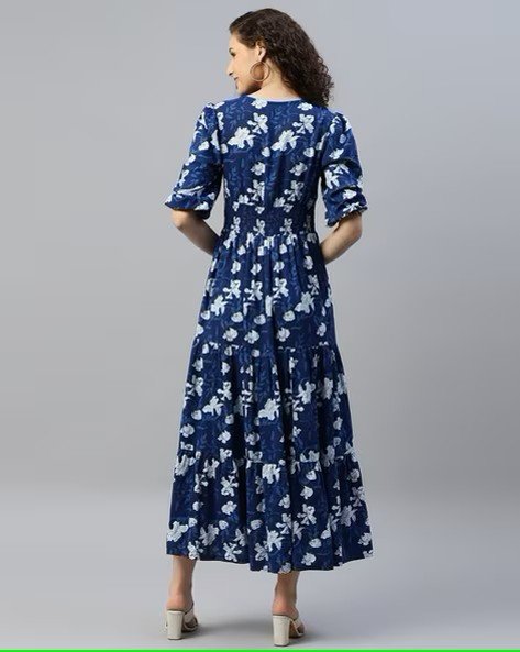 Women Floral Print Tiered Dress