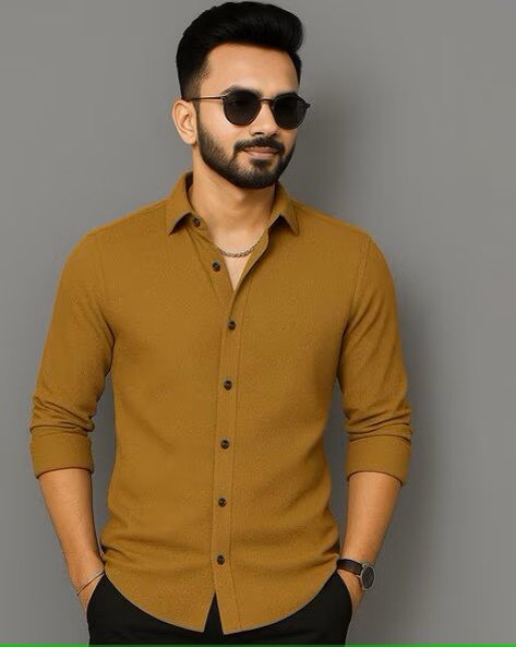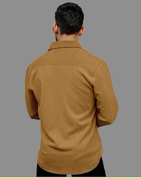 Men Regular Fit Shirt with Curved Hem