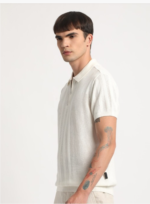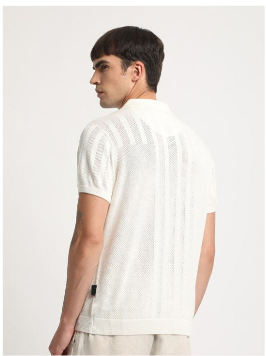 Self Design Relaxed Fit Cotton Polo Collar T-shirt