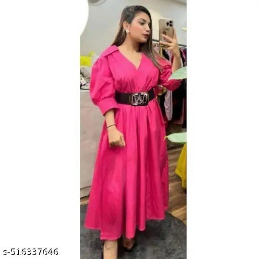 Name : New Design Women Fit and Flare Calf-Length Cotton Blend Puff Dress | dress party wear for women | dress for women | frock dikhao | women frocks party wear women frock dress long | women frock cotton