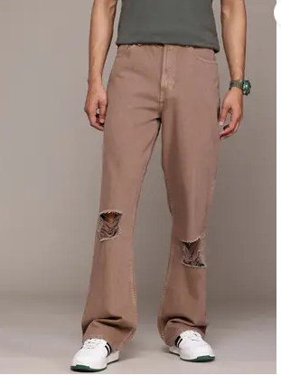 Men Flared Mid Rise Beige Jeans