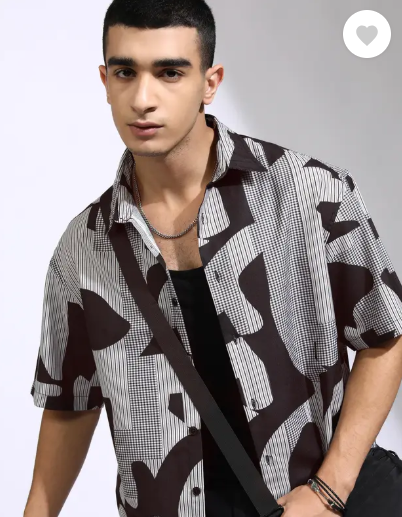 Men Oversized Fit Printed Cut Away Collar Casual Shirt
