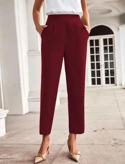 Regular Fit Women Maroon Trousers