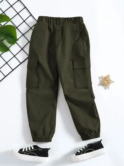 Trampoline Woven Trousers with 4 Pockets (Army Green) Boys Cargos
