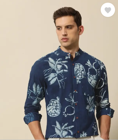 Men Tailored Fit Printed Mandarin Collar Casual Shirt