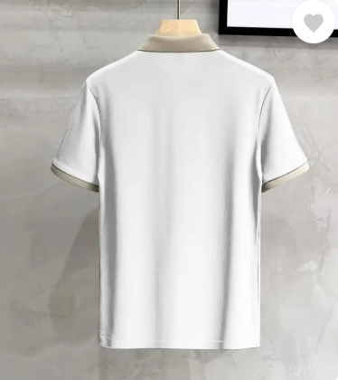 Men Solid, Self Design Polo Neck Cotton Blend White T-Shirt