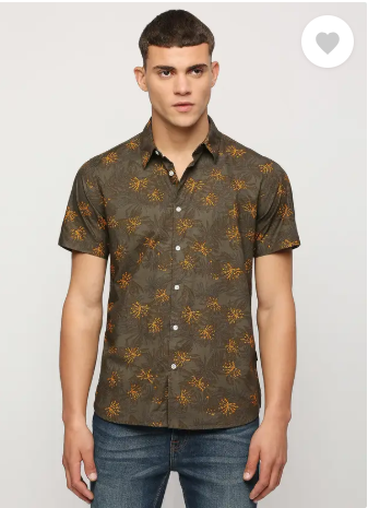 Men Regular Fit Printed Spread Collar Casual Shirt