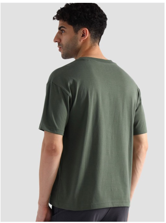 Olive lounge t-shirt, has a round neck and short sleeves with slip-on closure