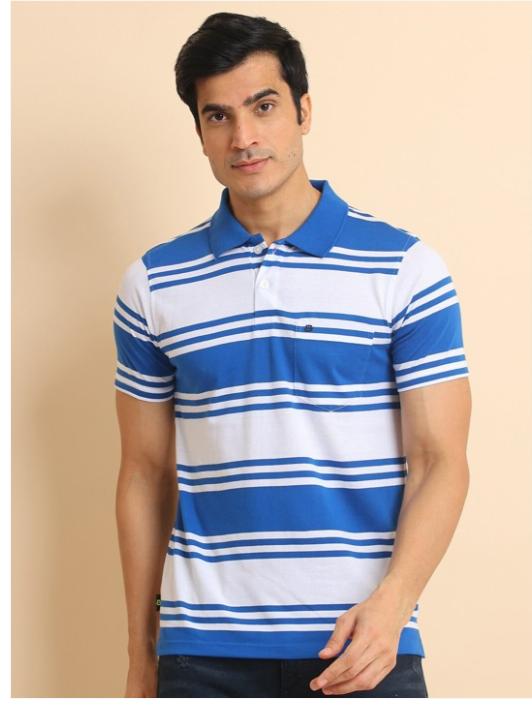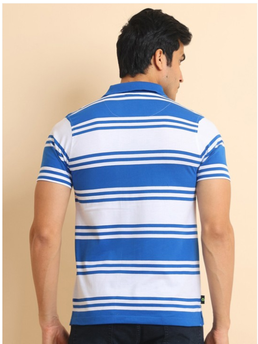 Striped Polo Collar Short Sleeves Cotton T-shirt