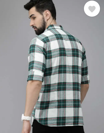 Men Slim Fit Checkered Button Down Collar Casual Shirt