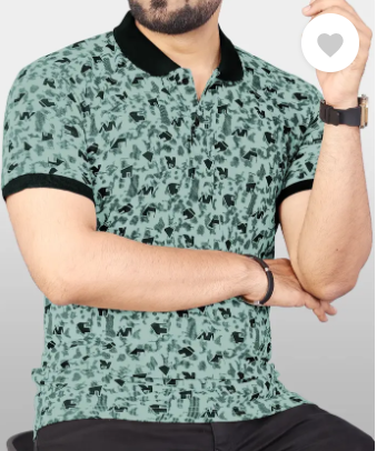 Men Printed Polo Neck Polyester Light Green T-Shirt