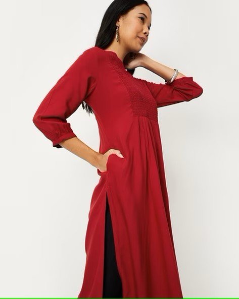 Women Smocked Straight Kurta
