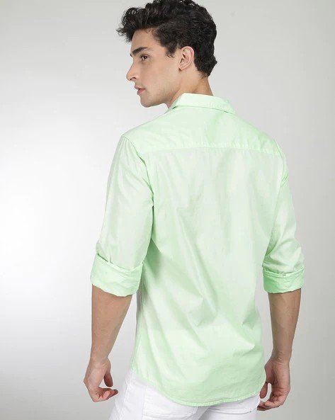 Spread Collar Shirt with Logo Patch Pocket