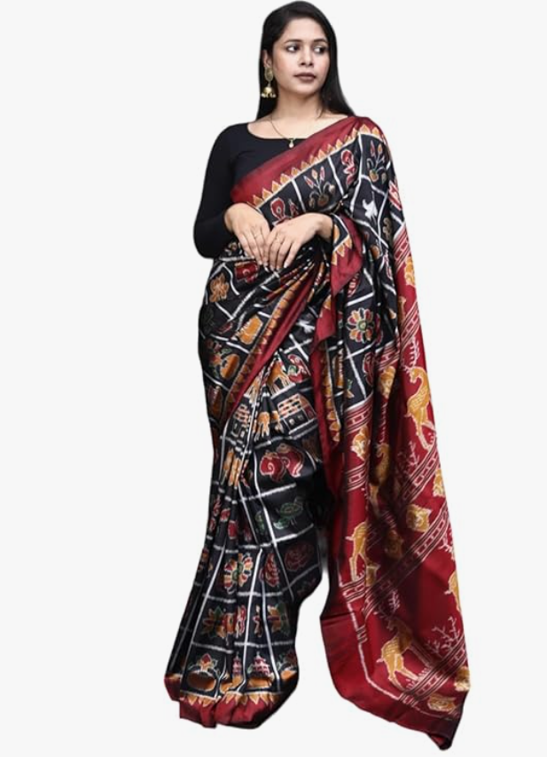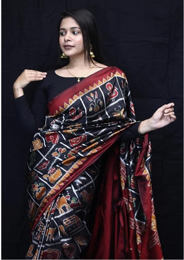 Women's Black Nabakothi Odisha Handloom Sambalpuri Silk Saree