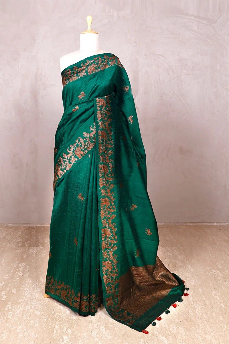 • Intricate Antique Zari Woven Shikargah and Bird Motif Border and Pallu