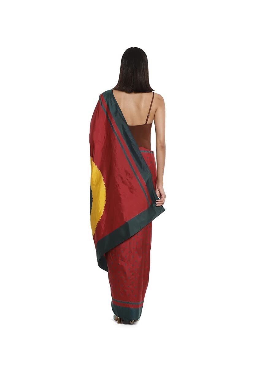 Satya Paul Red Silk Printed Saree