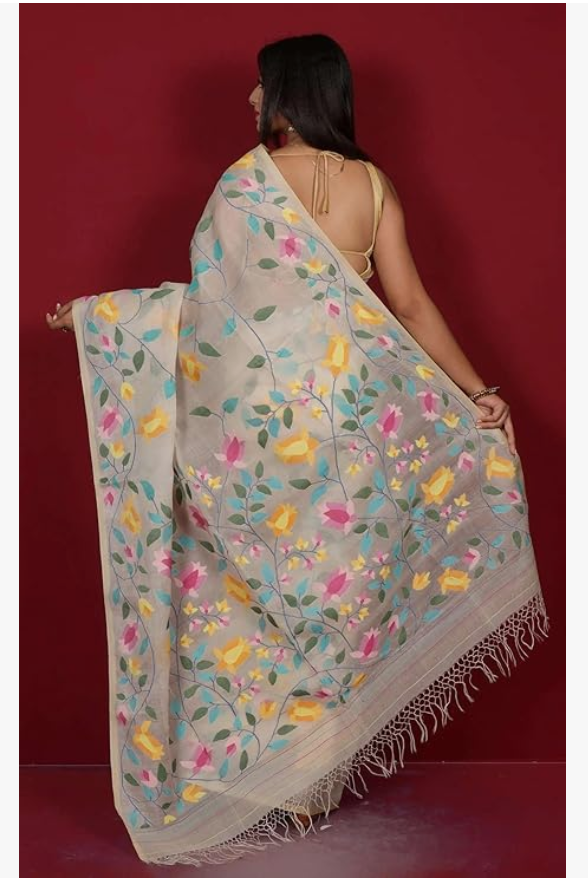 Silk Dhakai Jamdani Saree with Blouse Piece for Festivals and Occasions