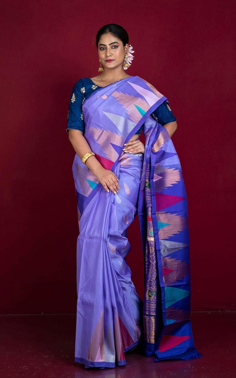 India Exclusive Mahapar Crowned Temple Border Gadwal Silk Saree