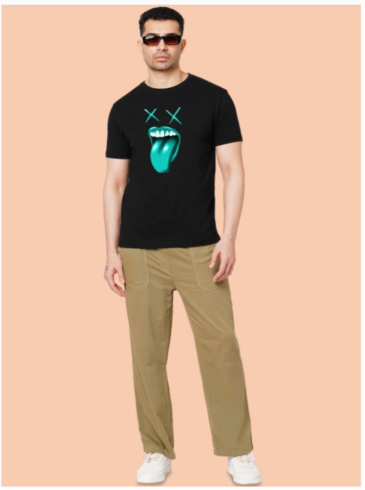 Black & Blue t-shirt for men Graphic Regular length Round neck Short sleeves Knitted