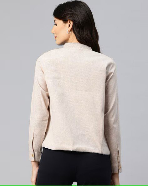 • Cottinfab Women Beige Solid Cotton Lightweight Open Front Jacket