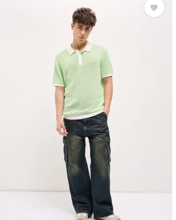 Men Self Design Polo Neck Pure Cotton Green T-Shirt