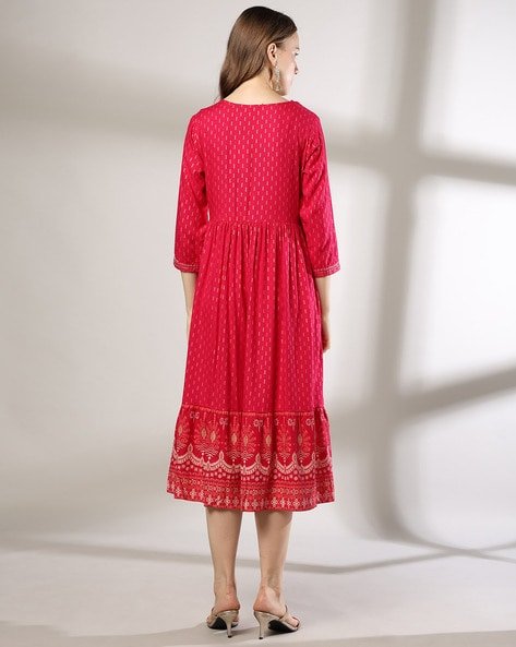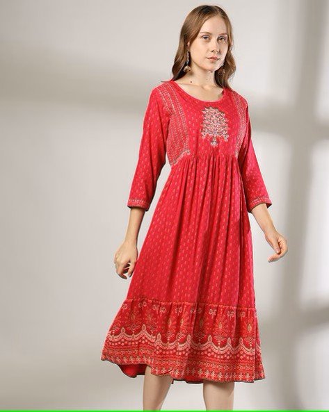 Women Embroidered Round-Neck A-Line Dress
