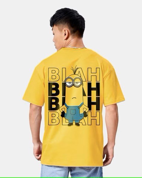 CRAZYMONK Men Graphic Oversized Fit T-Shirt with Round Neck