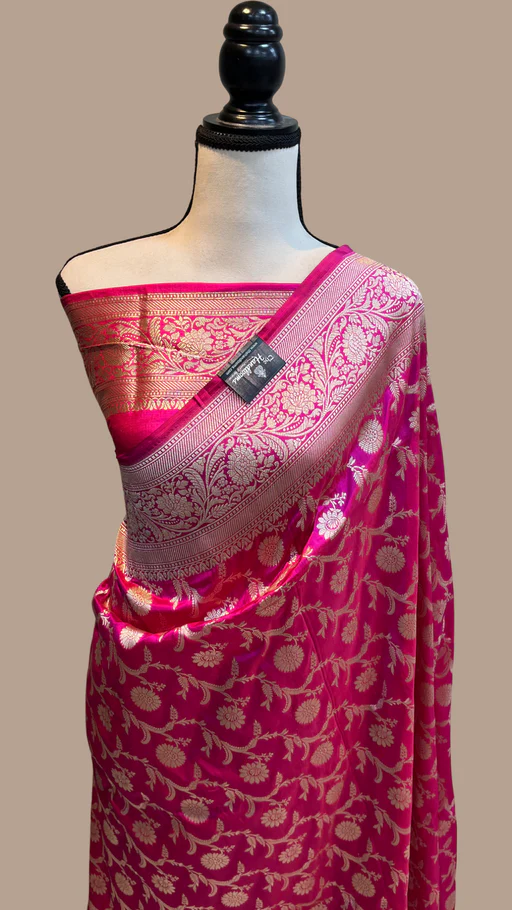 Hot Pink Pure Katan Silk Banarasi Handloom Saree
