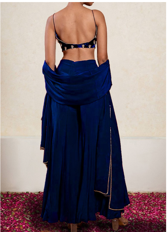 Blue Palazzo Set With Hand Embroidered Blouse And Dupatta