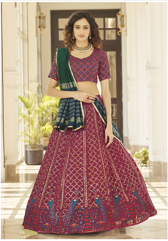 Step into elegance with this stunning Rani Pink Thread Embroidered Georgette Lehenga Set, designed to turn heads at every celebration. A beautiful blend of tradition and trend, it's your perfect pick for any grand event.