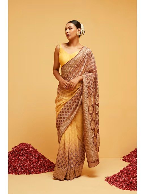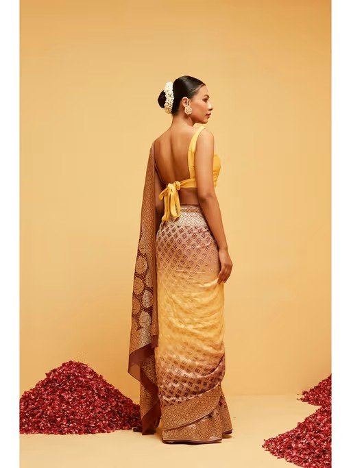 Adorn the styles specially made for you with this brown set from Suruchi Parakh. Made from high quality georgette, it features closure and woven pattern along with & design. Pair it with trendy footwear to elevate your look.
