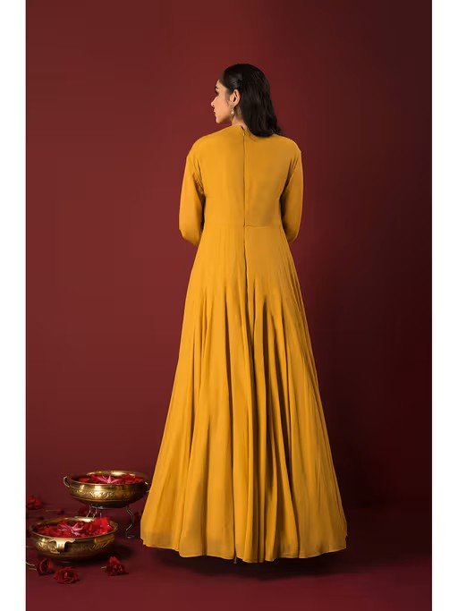 Floor Length Anarkali Dress With Drop Shoulder And Ballon Sleeve Yoke Embroidery With Mirror And Pastel Colour Resham