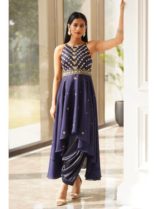 Elevate your ethnic wear wardrobe with Rashika Sharma purple kurta pant set. It features embellished & sequined pattern with sleeveless, shoulder straps design with ankle high waist bottom style. It is crafted from finest material. This outfit is perfect for special occasion. Add trendy footwear to complete the look.