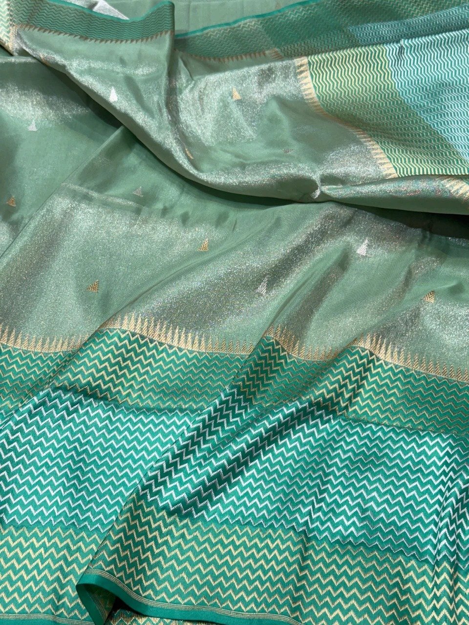 Pista Handwoven Pure Banarasi Ektara Tissue Saree