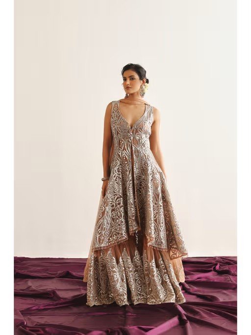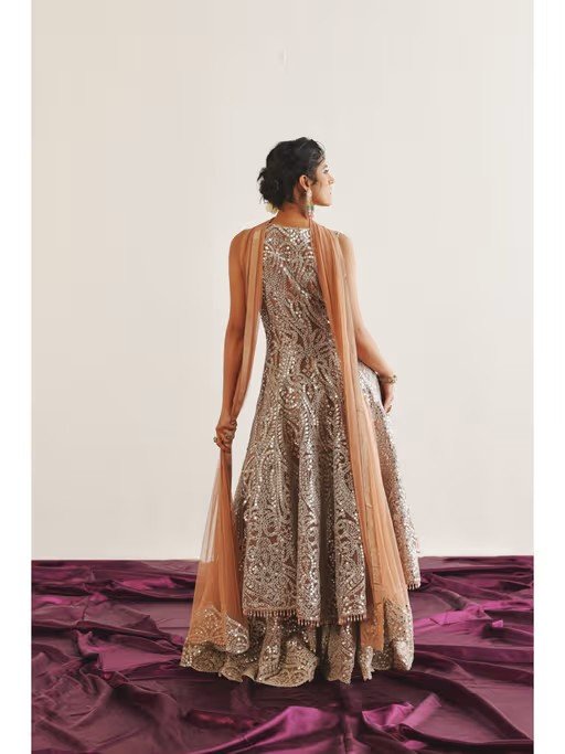 Effortlessly stylish, this Twenty Nine's brown applique sharara blends classic charm with modern ease. It is crafted from high-quality fabirc. It features zipper closure. It's the epitome of understated elegance, perfect for festive, wedding, or special occasions.