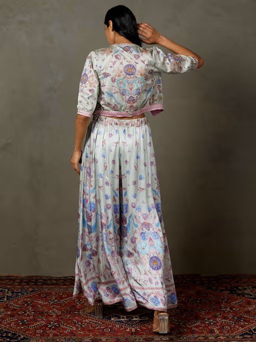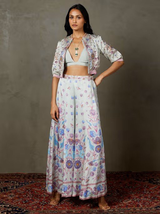 Powder Blue Machine And Hand Emb Palace Flower Jacket With Blouse And Palazzo. It is designed to ensure optimum room for ease of movement. It is sure to fetch you from all. Join the league of fashion elites flaunting the staple.