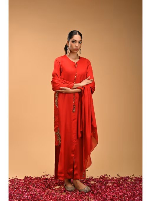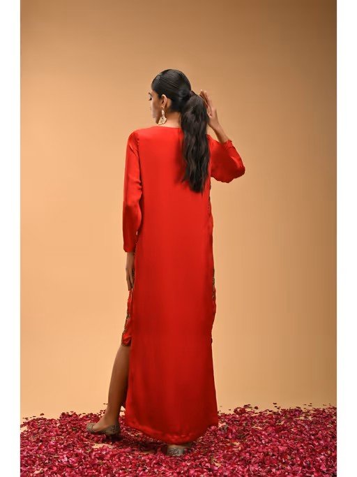 Red Tie-Up Neck Maxi Dress with Dupatta (Set of 2)