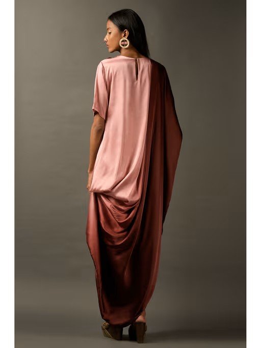 Featuring A Multi-Colored Ombre Kaftan Style Dress In Satin Base With Embroidery.
