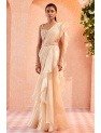 • Dirty ivory net embroidered blouse and chiffon-organza draped ruffle saree and embroidered belt