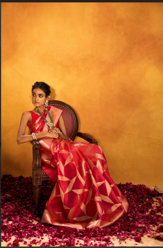 The lightweight organza fabric allows for an elegant, effortless drape, ensuring comfort without compromising on luxury. Perfect for a bride’s trousseau or a festive celebration, this saree embodies grace and femininity.