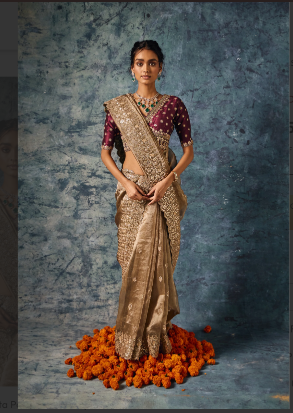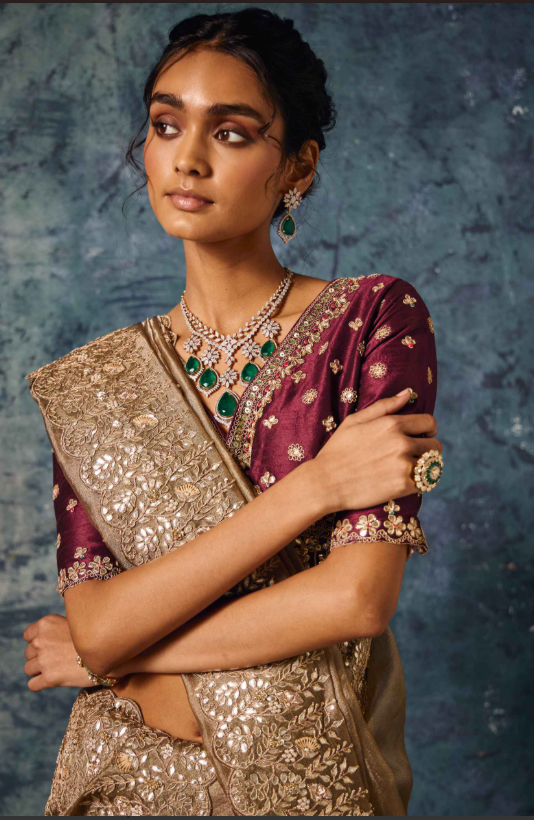 The sheer, airy texture of organza ensures a graceful drape, making it ideal for elegant daytime gatherings or evening receptions. The saree pairs beautifully with intricate jewelry, striking the perfect balance between subtlety and grandeur.