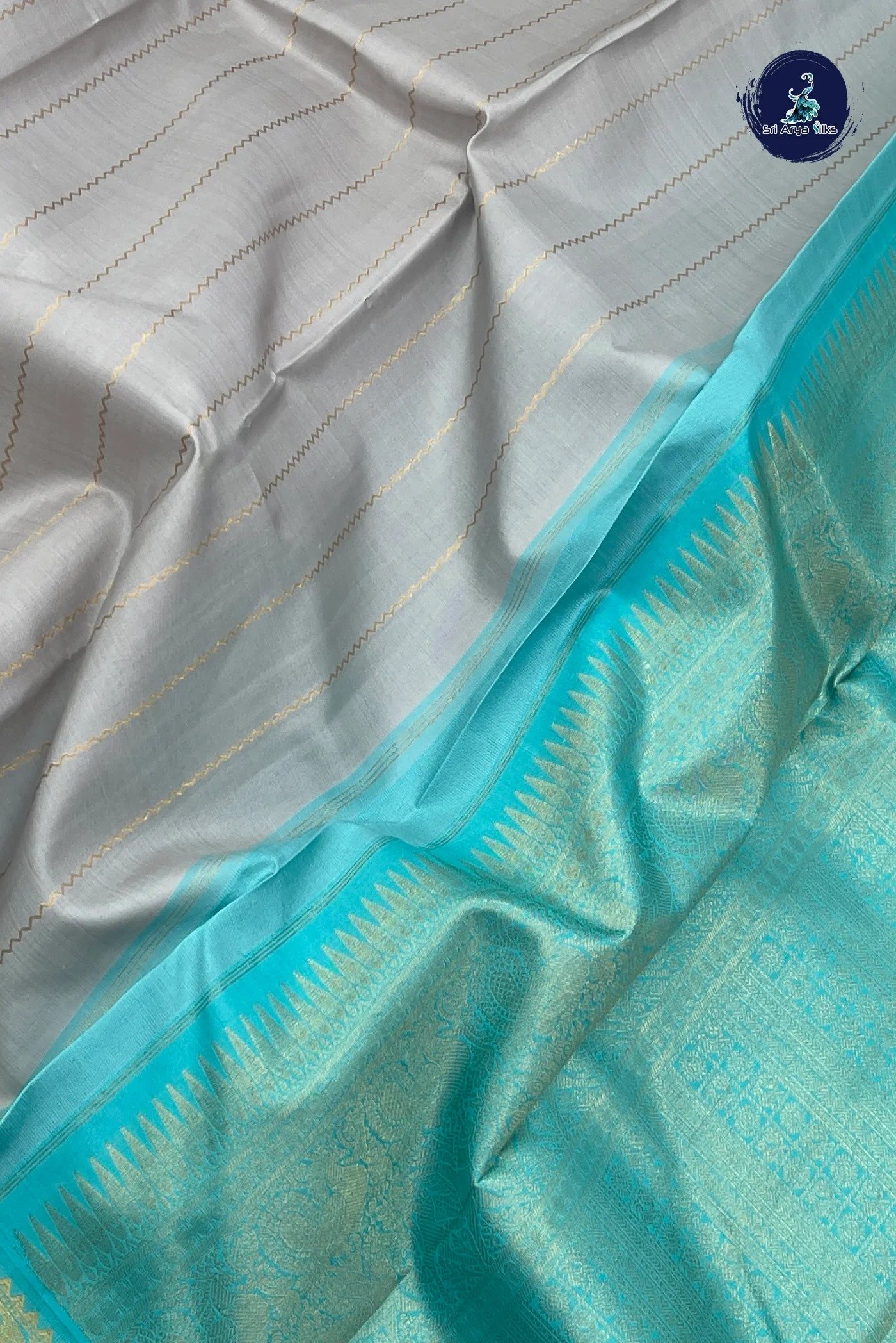 Presenting our exclusive Silver Grey Korvai Contrast Silk Saree. This saree features a mayilkan border with 2 gram gold zari. The contrast border and the specially woven pure silk material further enriches the saree's appeal. Completed with stripes pattern, this saree promises a unique blend of tradition and style.