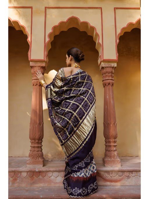 Step into grace with this Geroo Jaipur Wine Ajrakh Handblock Bandhani Silk Saree with Unstitched Blouse Zari Pallu. Geroo Jaipur ethnic sarees come with a blouse piece, which can be stitched according to your taste and preference, with this beautiful design and fabric, this saree will fetch you oodles of compliments and praise.