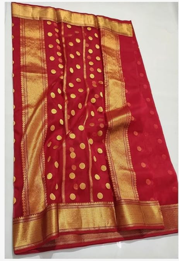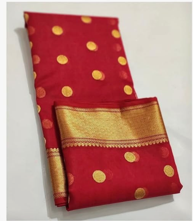 Golden Zari Polka Dots & Border | Traditional Ethnic Wear For Weddings & Festive Occasions