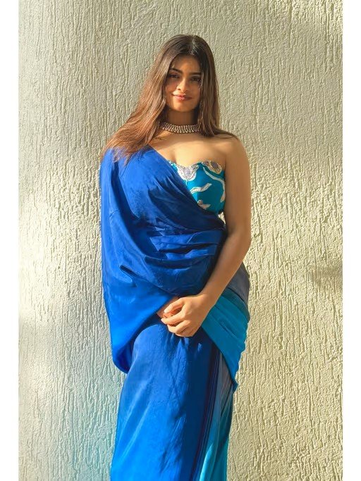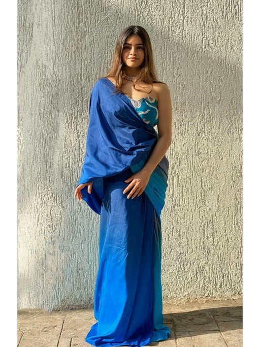 Blue Peacock Concept Pre-Drapped Saree With Stitched Blouse