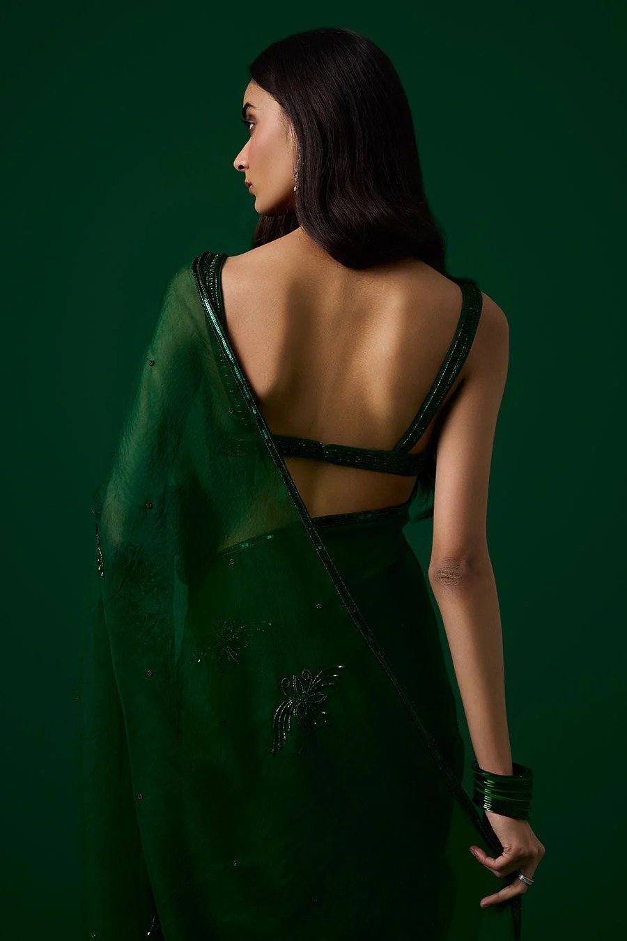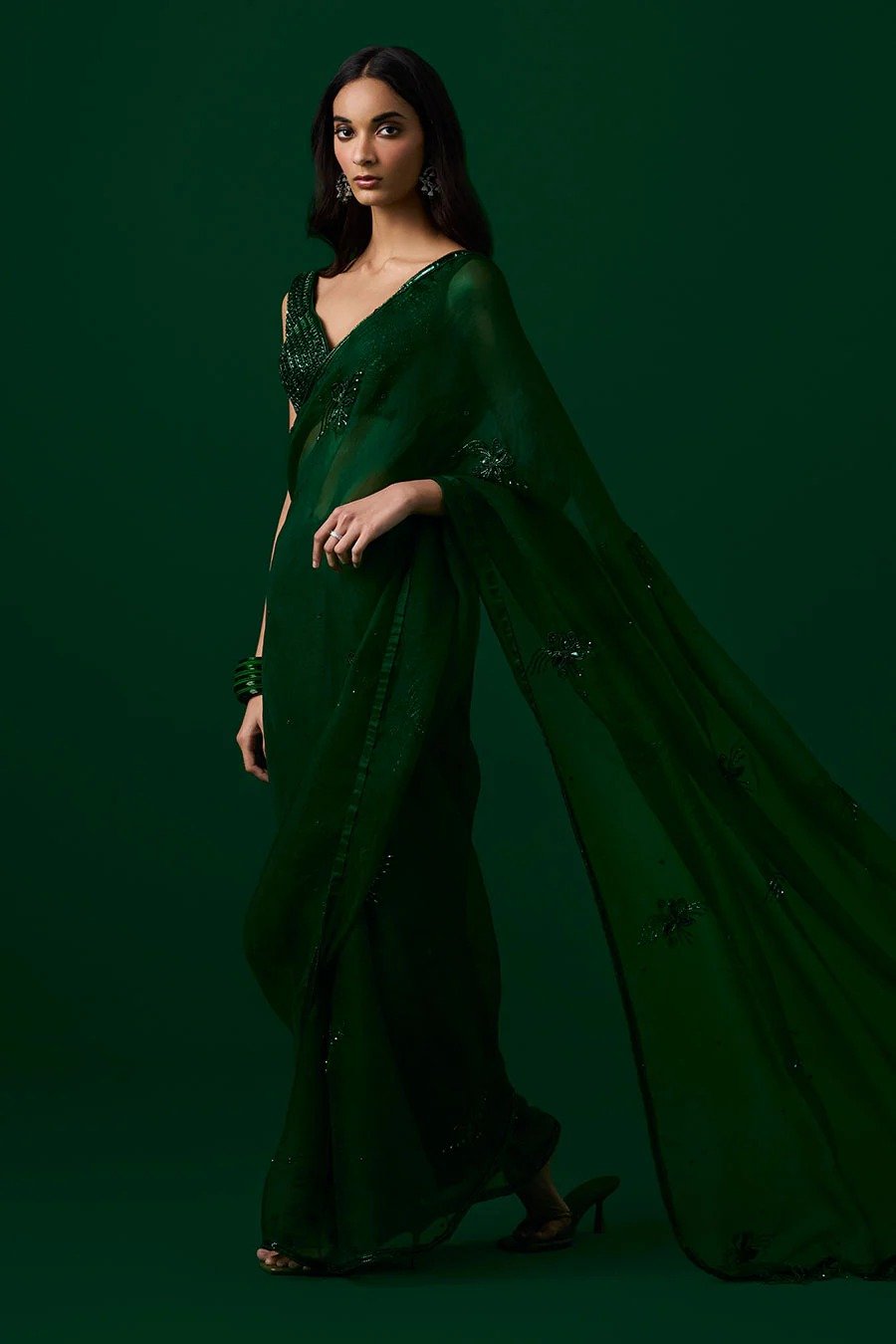 Green Crystal Embroidered Saree & Blouse Set