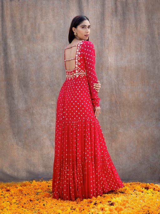 Elevate your ethnic wardrobe with the timeless elegance of the Silky Bindra kurtas kurtis and tunics collection. It features premium quality georgette fabric . Whether you are attending wedding or special occasion, these kurtas kurtis and tunics are perfect to it. It features mirror work flared sleeves and v-neck . Pair it with heels, carry potli bags and jewellery.