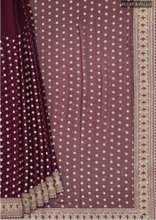Maroon Georgette Saree with Embroidery on the body and Embroidery Border. Includes unstitched blouse.