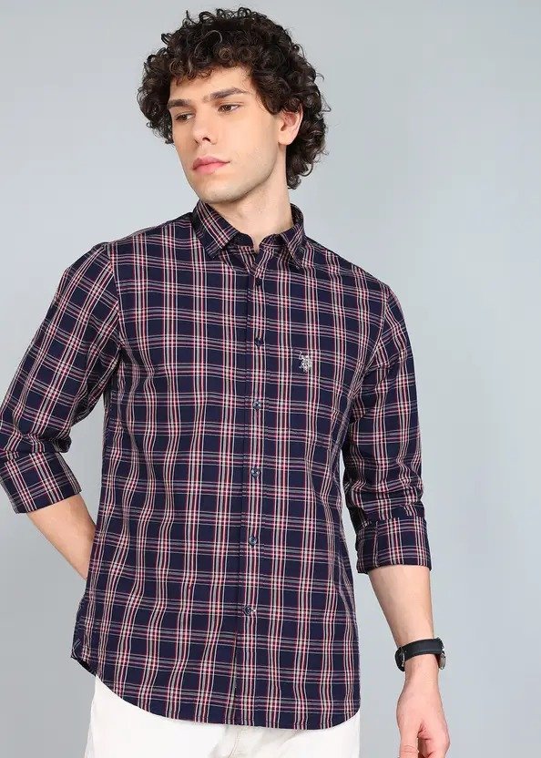 Men Regular Fit Checkered Cut Away Collar Casual Shirt