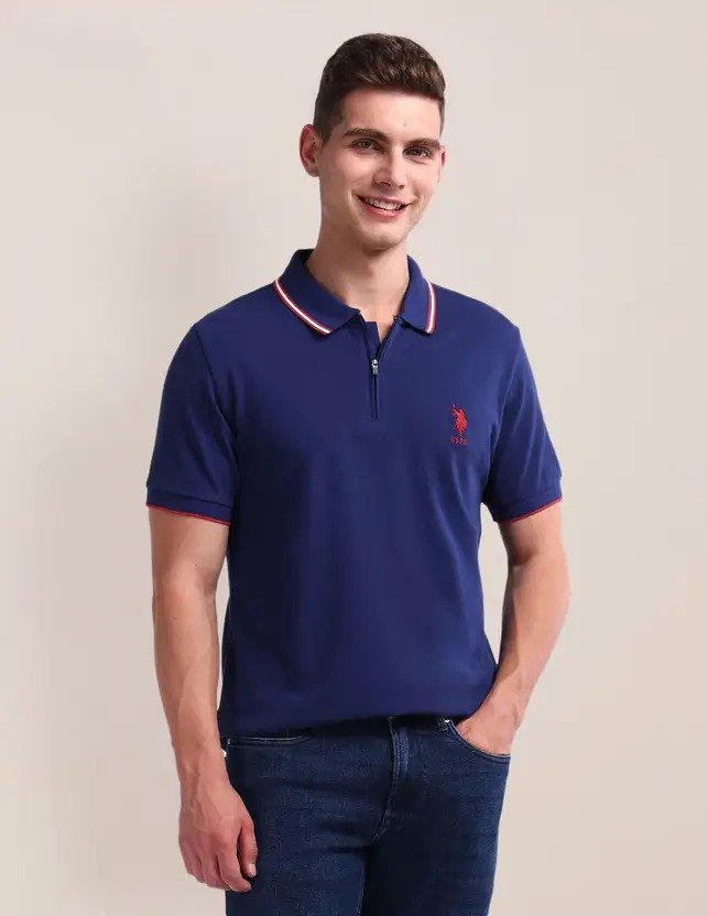 Men Striped Polo Neck Pure Cotton Purple T-Shirt